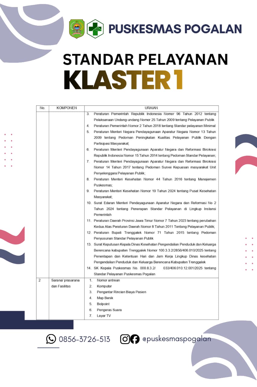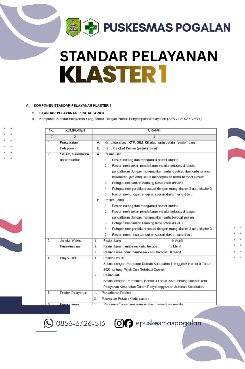 STANDAR PELAYANAN KLASTER 1 SISTEM PENDAFTARAN