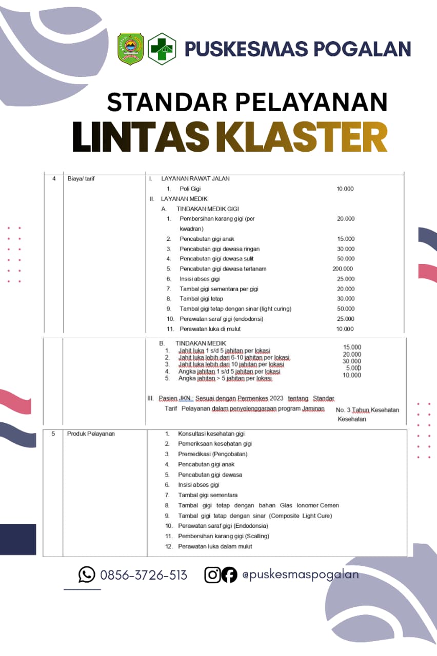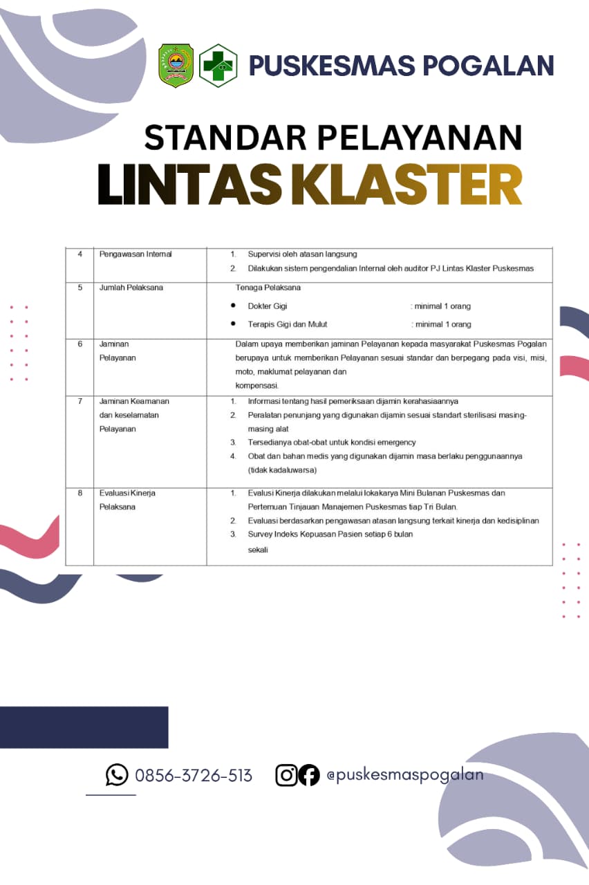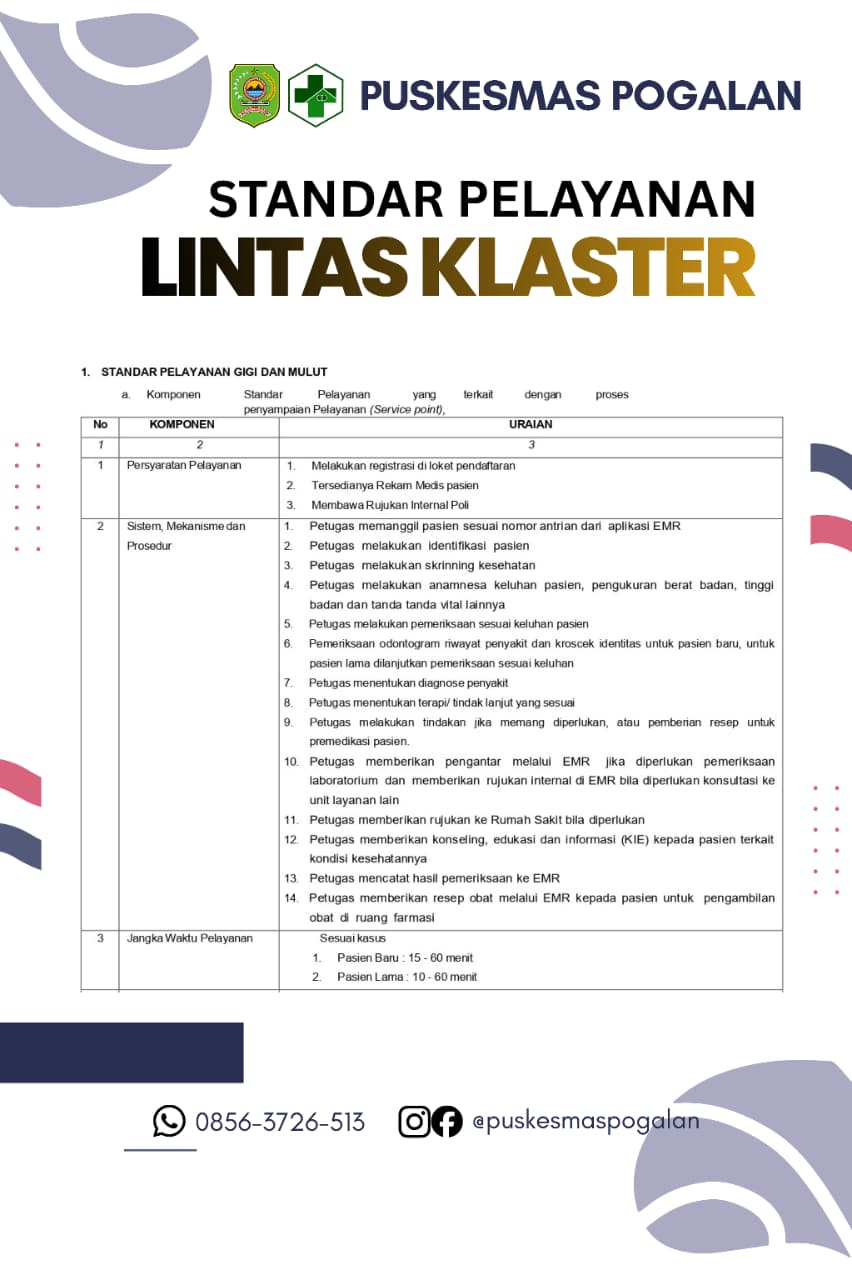 STANDAR PELAYANAN LINTAS KLASTER PELAYANAN GIGI DAN MULUT